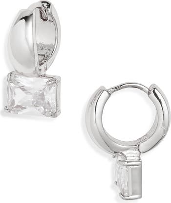 Channel contemporary elegance in polished huggie earrings accented with cubic zirconia stones that sparkle and shine.