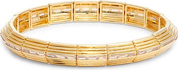Gleaming ridged links catch the light on this Art Deco–inspired stretch bracelet centered by sparkly baguette-cut cubic zirconia.