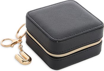 Keep your favorite pieces of jewelry neat and safely sorted in this initial-tagged organizer that brings ultimate functionality to your next vacation getaway. The initial can be removed and used as a keychain or a bag charm.
