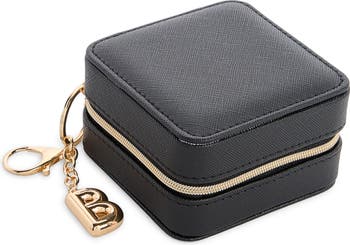 Keep your favorite pieces of jewelry neat and safely sorted in this initial-tagged organizer that brings ultimate functionality to your next vacation getaway. The initial can be removed and used as a keychain or a bag charm.