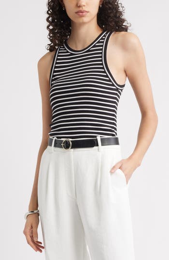 Every closet needs this crewneck tank covered in allover ribbing for a close fit.