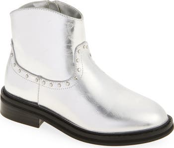 Dome studs trace a shining path around this versatile bootie designed with a side zip that makes it easy to put on and take off.