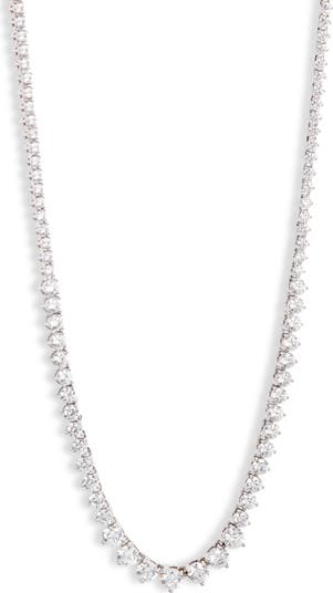 Show off glamorous sparkle with an elegant tennis necklace illuminated by an array of graduated round-cut cubic zirconia stones.