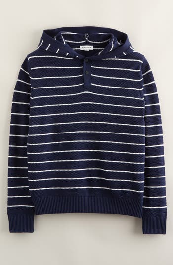 Keep them dapper and comfortable in this textured henley made with a slouchy hood and anchored by soft ribbing.