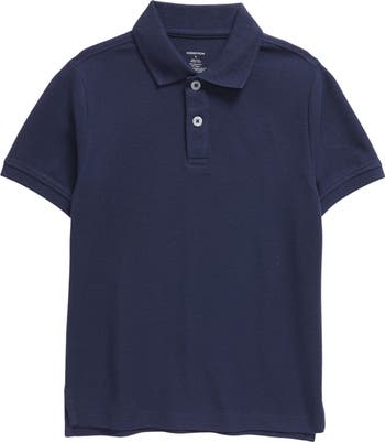 A textural piqué knit elevates this kid-sized polo made of a soft cotton blend.