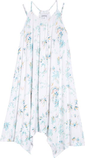 Double straps and a flowy handkerchief hem give this stretchy knit dress a carefree feel she'll love for days in the sunshine.