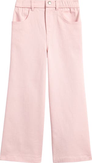Fresh hues for the new season add to the appeal of cute jeans cut from stretch twill and fashioned with wide legs.