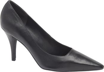 Complete a polished look with this sleek leather pump punctuated by a pointed toe and lifted by a wrapped stiletto heel.