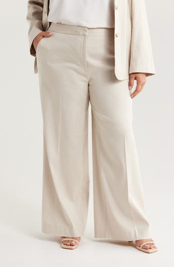 A creased front and wide legs lend work-to-weekend versatility to these staple linen-blend pants.