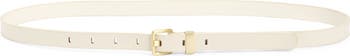 A shiny buckle commands the center of this slender belt that is great for adding the final touch to ensembles.