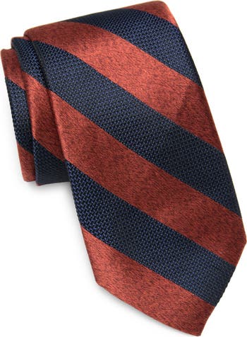 Monochromatic stripes in a mix of textures add dimension to this classic silk tie.