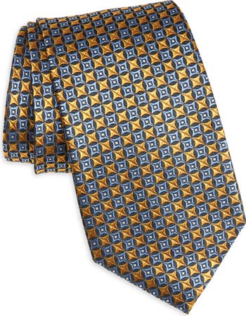 Fashioned from lustrous silk jacquard, this neatly patterned tie brings dapper distinction to formal and semiformal attire.
