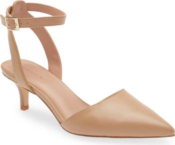 Complete your next office or evening ensemble with this poised pump showcasing a pointed toe and low kitten heel.
