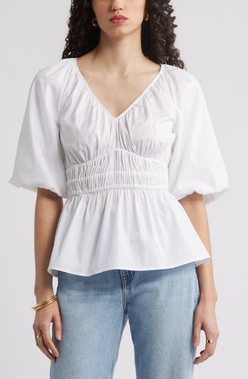 Puff sleeves and a shirred bodice create the boho-chic silhouette of a cotton poplin shirt that's sure to be an everyday favorite.