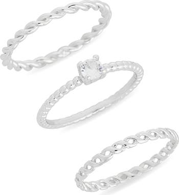 Elevate your ring stack with this trio of assorted bands that are full of texture and sparkle.