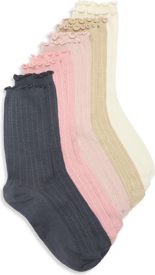 Refresh your essentials with this pack of ribbed crew socks framed by dainty lettuce-edge trim.