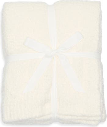 Cuddle up for the night in this plush and lustrous butter throw blanket edged by ribbed trim for homey texture.