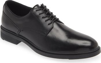 A burnished plain toe adds classic appeal to a versatile derby crafted from smooth leather.
