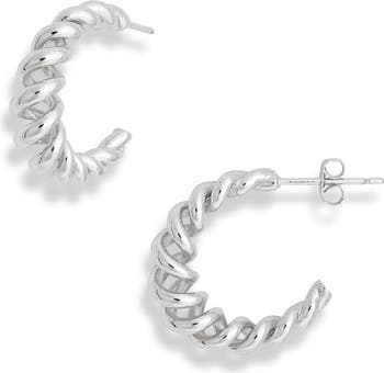 A coiled texture lends depth and dimension to polished earrings designed to instantly modernize your hoops collection.