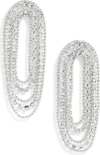 Bring certain gleam to any lookin these fringe earrings made of chains asparkle with crystals.
