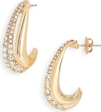 Pavé crystals illuminate these slender hoop earrings plated in warm goldtone for elegant shine.
