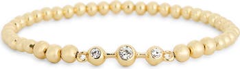 Bezel-set cubic zirconia sparkle from this metallic-beaded stretch bracelet that's perfect to layer or show off solo.