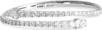 Show off glamorous sparkle with this hinged bypass bracelet illuminated by round and pear-cut cubic zirconia.
