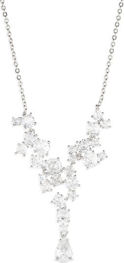 A cascade of round and teardrop cubic zirconia creates dazzling sparkle in this statement necklace.