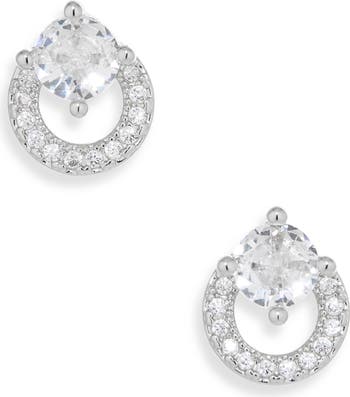 A round-cut cubic zirconia rests on top of a pavé circle in these day-to-night studs that comes in plating of your choice.