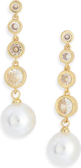 Cubic Zirconia & Faux Pearl Linear Drop Earrings