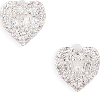 Heart-shaped cubic zirconia brings lustrous sparkle to these ever-lovely stud earrings.
