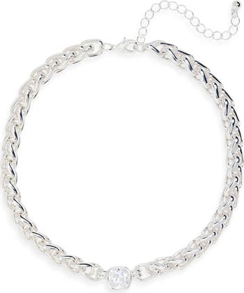 A bezel-set cubic zirconia sparkles and shines on this chain collar necklace.