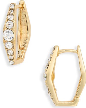 Shimmering cubic zirconia accents elevate these tapered hoop earrings with radiant sparkle.