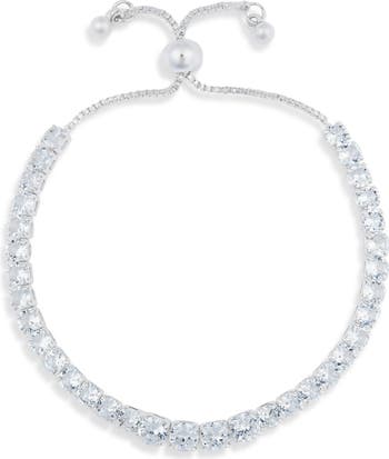 This prong‑set cubic zirconia tennis bracelet with slide closure blends classic sparkle with contemporary ease.