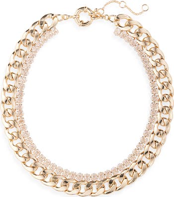 Instantly create a stacked look on your neck with this layered necklace showcasing curb links and oval-cut cubic zirconia stones.