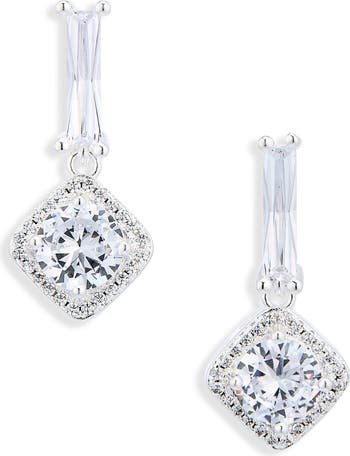 Cushion Halo Cubic Zirconia Drop Earrings
