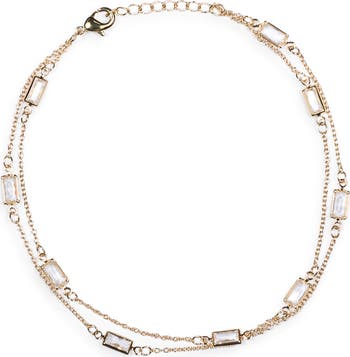Dainty chains bring a delicate balance to this layered chain anklet dazzling with baguette cubic zirconia stations.