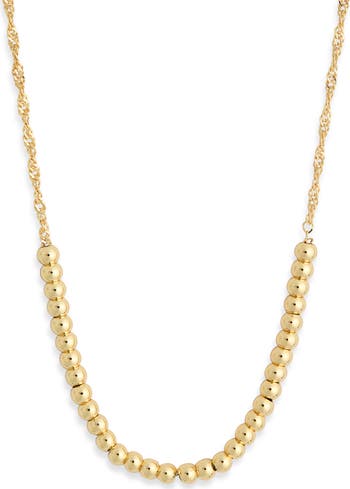 Polished baubles bring contemporary elegance to this day-to-night chain necklace plated in warm 14-karat gold.