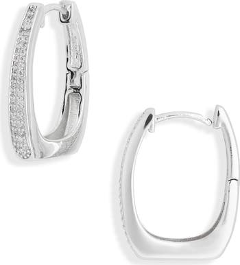 Pavé cubic zirconia illuminate these polished hoop earrings plated in fine metal for elegant shine.