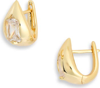 Demi Fine Cubic Zirconia Teardrop Huggie Hoop Earrings