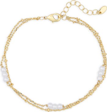Dainty oval links deliver a captivating shine to this anklet, finished with faux‑pearl beads in polished sterling silver or 14‑karat gold.