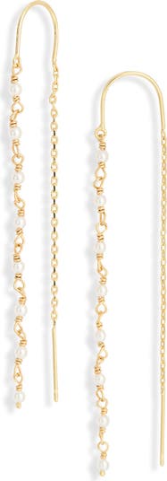 Bring subtle, lustrous shine to your evening ensembles with these slinky threader earrings showcasing dainty faux pearls.