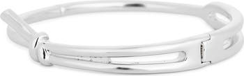 A knotted silhouette catches the light on this hinged bangle bracelet plated in polished sterling silver or warm 14-karat gold.