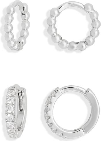 Show off striking shine with this huggie-hoop earrings set layered in fine metal and illuminated by dainty cubic zirconia.