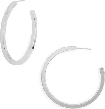 Squared edges frame these highly polished hoop earrings plated in 14-karat gold or sterling silver for elegant shine.