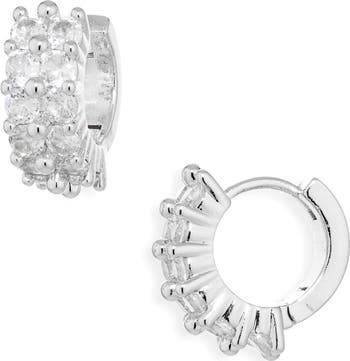 Doubled-up rows of cubic zirconia amp up the shine of these dazzling huggie hoops.