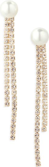 Brilliant crystals and gleaming prong hardware adorn these charming faux-pearl drop earrings, adding vintage-inspired sparkle to your special-occasion look.