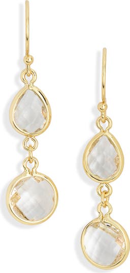 Bezel-set cubic zirconia catch the light on these elegant double-drop earrings that bring just-right sparkle to your look.