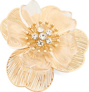 A frosted flower blossoms from your hand with this statement cocktail ring made with frosted petals and sparkling stone centers.