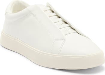 A smooth faux-leather upper distinguishes a sneaker built with elastic laces for easy on-offs from casual days to weekend outings.